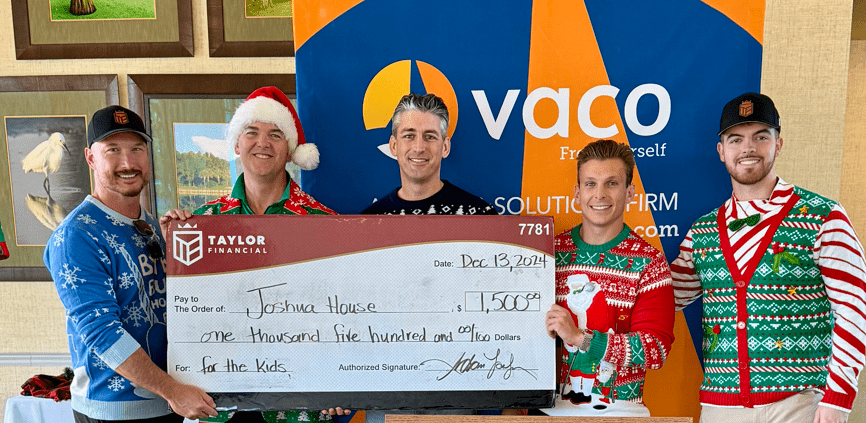 Tacky sweaters, great swings, and giving back! Taylor Financial proudly donated $1,500 to the 2024 Vaco Charity Golf Tournament to support Joshua House and at-risk youth in our community.